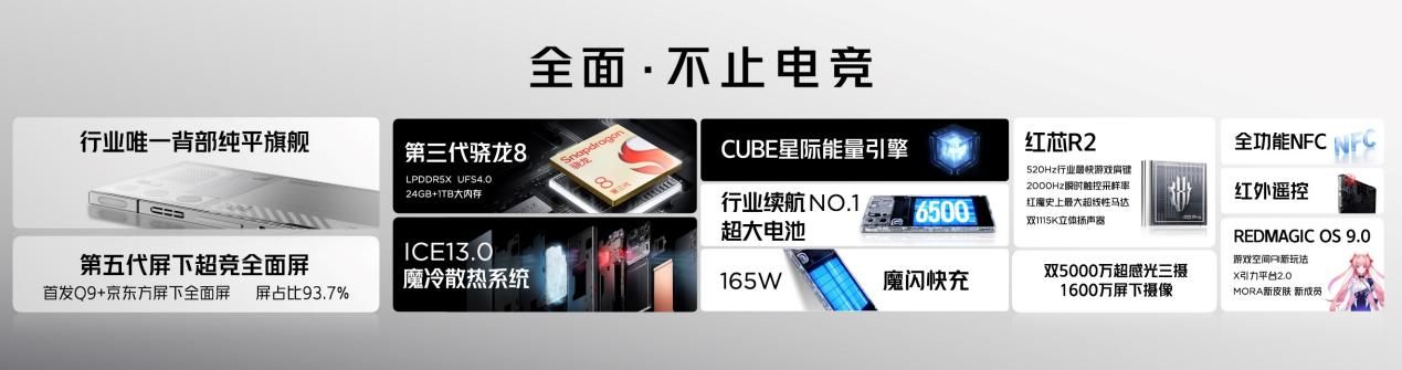 紅魔9 Pro系列作為一款全能電競旗艦,擁有行業(yè)唯一的純平背板和超競?cè)嫫粒钆涞谌旪?旗艦處理器以及最高6500mAh大電池,最快165W魔閃快充的配置,絕美視效和性能續(xù)航體驗一騎絕塵。此外,紅魔影刃2代手柄、紅魔電競顯示器等電競宇宙新品也同步亮相。紅魔9 Pro系列,京東全球首發(fā)!售價4399元起,支持至高12期免息,即日起在紅魔官網(wǎng)、紅魔京東官方旗艦店等渠道開啟預(yù)約,11月28日10點正式開售。
