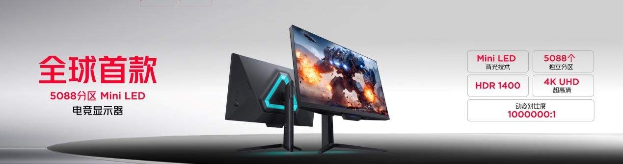 除了電競級影刃2代手柄,紅魔電競宇宙還有兩款規(guī)格極高的電競顯示器。首先是全球首款5088分區(qū)的miniLED電競顯示器,紅魔為其配備4K 160Hz高刷,99%的DCI-P3廣色域,色準(zhǔn) △E<1、還有滿配的全速率接口,達(dá)到行業(yè)頂級水準(zhǔn)。紅魔5088分區(qū)的miniLED電競顯示器售價5999元,首發(fā)嘗鮮價5499元!