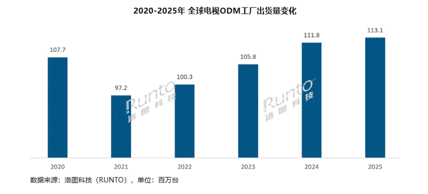 全球電視代工市場在2025年繼續(xù)保持增長勢頭。根據(jù)洛圖科技最新報(bào)告,全年出貨總量達(dá)到1.13億臺(tái),同比增長1.2%,這也是自2022年以來連續(xù)第四年實(shí)現(xiàn)上漲。市場呈現(xiàn)穩(wěn)健態(tài)勢,上半年增長1.6%,下半年略緩為0.9%,整體波動(dòng)平緩。