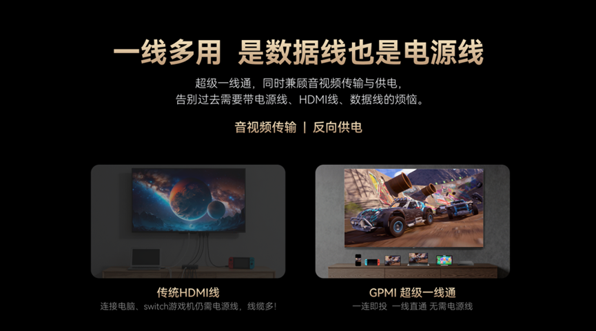 在智慧家庭場景中,GPMI掀起了一場“化繁為簡”的革命。它的核心突破在于,將音視頻、供電、網(wǎng)絡和控制信號多合一傳輸,僅憑一個標準接口和一根線纜,就完成了傳統(tǒng)需要五六根線才能實現(xiàn)的任務。