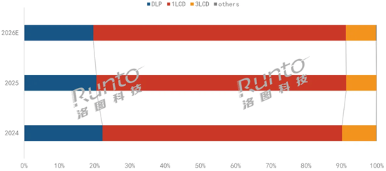 2024-2026E 全球投影機(jī)市場(chǎng)分投影技術(shù)出貨量結(jié)構(gòu)