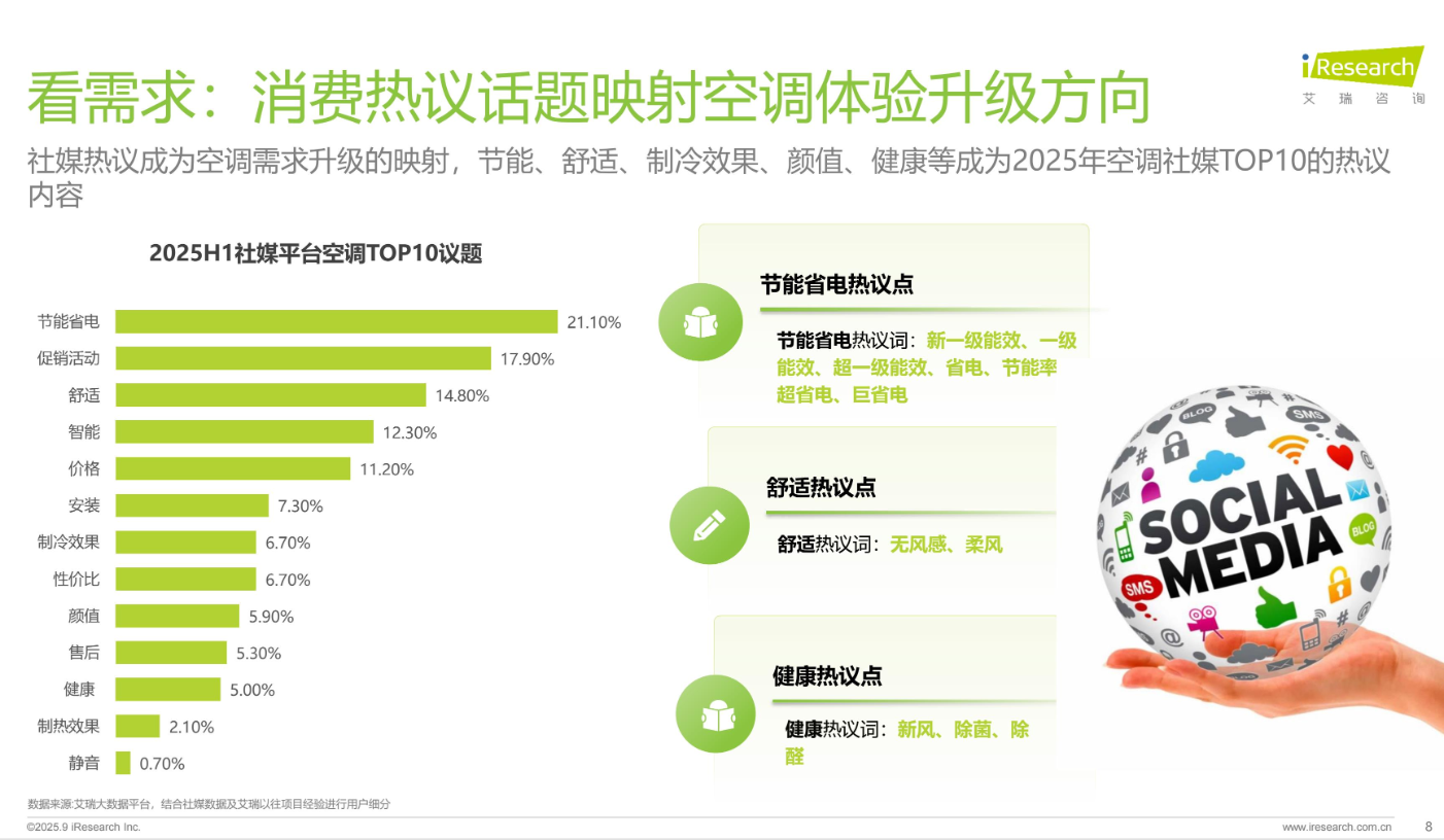 據(jù)艾瑞咨詢《2025空調(diào)行業(yè)趨勢與消費(fèi)需求白皮書》,政策推動(dòng)的低碳轉(zhuǎn)型與消費(fèi)端品質(zhì)升級形成共振,推動(dòng)空調(diào)從“單一溫度調(diào)節(jié)器”向“空氣品質(zhì)管理中樞”演進(jìn)。健康舒適、低碳節(jié)能、AI智能已成為定義“好空調(diào)”的三大黃金標(biāo)準(zhǔn)。