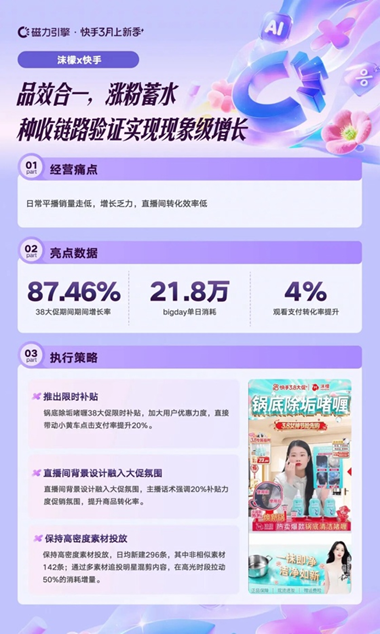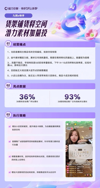 快手磁力引擎依托多素材追投等產品能力,幫助商家打破直播場域邊界,精準承接流量紅利。