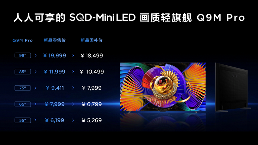 如果只看前半場(chǎng),一切都在意料之中。SQD-Mini LED電視新品來(lái)了,Q9M Pro、T7M Pro、T7M Ultra,最低價(jià)格直接殺到5000元檔。這是TCL這幾年一直在做的事,把Mini LED的技術(shù)紅利不斷下沉,讓更多人能用更少的錢,買到過(guò)去只有旗艦機(jī)才有的畫質(zhì)。這件事他們做得熟練,產(chǎn)業(yè)鏈在自己手里,成本能控住,技術(shù)能下放,對(duì)手很難跟。