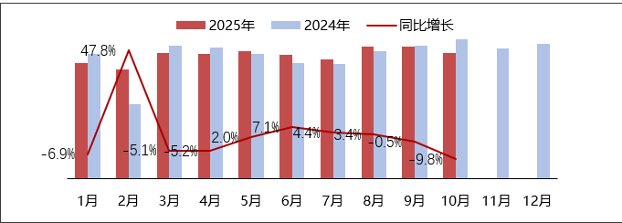 受去年同期國(guó)補(bǔ)政策推動(dòng),激發(fā)消費(fèi)需求形成的高基數(shù)壓力影響下,10月冰箱產(chǎn)銷同比均呈個(gè)位數(shù)下滑,但規(guī)模仍遠(yuǎn)高于2023年及歷史同期水平,其中行業(yè)銷售表現(xiàn)略好于生產(chǎn)。據(jù)產(chǎn)業(yè)在線了解,由于終端市場(chǎng)內(nèi)需疲軟,部分企業(yè)當(dāng)月加大了檢修和放假的減產(chǎn)力度。內(nèi)銷市場(chǎng),隨著10月初第四批690億元國(guó)補(bǔ)資金正式開放,疊加“雙十一”購(gòu)物節(jié)的啟動(dòng),以及京東、抖音等電商平臺(tái)加大促銷力度,共同推動(dòng)內(nèi)銷環(huán)比小幅增長(zhǎng)3.2%。但值得注意的是,由于多地政策采取“限流搶券”“搖號(hào)”等形式,消費(fèi)者實(shí)際獲取優(yōu)惠的難度上升,一定程度上削弱了政策對(duì)消費(fèi)的拉動(dòng)效果,此外受去年同期高基數(shù)、住宅竣工及銷售面積承壓等影響,本月內(nèi)銷同比呈兩位數(shù)下滑。本月出口同小幅下滑1.3%,規(guī)模僅次于去年同期。分洲別來看,僅出口北美、歐洲市場(chǎng)同比延續(xù)下行態(tài)勢(shì),出口其余洲別則均有不同程度增長(zhǎng),大洋洲由于基數(shù)較低,增長(zhǎng)最快,同比漲幅超20%。出口TOP10國(guó)家中,本月美國(guó)、俄羅斯、德國(guó)和韓國(guó)四國(guó)規(guī)模不及去年同期,出口其余六家國(guó)家均同比增長(zhǎng),其中墨西哥表現(xiàn)亮眼,受去年同期基數(shù)較低,同比增幅超75%。在全球經(jīng)濟(jì)動(dòng)蕩背景下,企業(yè)多采取加大布局海外市場(chǎng),拓展新興市場(chǎng)等舉措。
