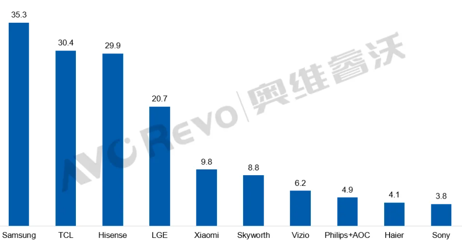 2025年全球TV TOP10品牌出貨規(guī)模