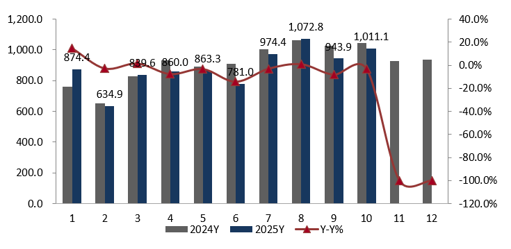 產(chǎn)業(yè)在線數(shù)據(jù)顯示:2025年10月彩電產(chǎn)量1363萬臺,同比下滑7.8%,銷量1358萬臺,同比下滑7.0%;其中出口1011萬臺,內(nèi)銷347萬臺,分別同比下滑3.2%和16.7%。累計來看,1-10月份彩電生產(chǎn)11756萬臺,同比下滑3.9%,銷售11684萬臺,同比下滑3.6%,其中出口8855萬臺,內(nèi)銷2829萬臺,分別同比下滑2.9%和5.9%。本月彩電內(nèi)銷市場依然呈現(xiàn)下滑態(tài)勢,一方面源于國補(bǔ)拉長后的紅利效應(yīng)持續(xù)弱化,另一方面受去年第四季度高基數(shù)拖累,環(huán)比雖有上揚(yáng)但整體表現(xiàn)不佳;在北美“黑五”補(bǔ)貨以及為規(guī)避關(guān)稅帶來的成本上漲風(fēng)險,出口訂單節(jié)奏加快,但是依然很難超越去年的高基數(shù)。
