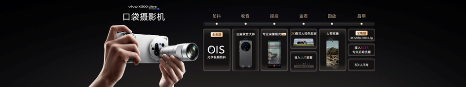 創(chuàng)作自由不只屬于靜態(tài)影像,為此vivo X300 Ultra視頻能力再度升級。不僅全焦段視頻高規(guī)格,而且全焦段視頻好畫質(zhì)。防抖方面,全焦段OIS光學(xué)視頻防抖,其長焦3°OIS光學(xué)防抖能力,即使裝上增距鏡拍攝,依然穩(wěn)定出片。收音方面,四麥?zhǔn)找舸髱?,支?大場景化收音預(yù)設(shè),一鍵獲得高質(zhì)量的收音,還可以連接專業(yè)的無線麥,實現(xiàn)收音自由。在監(jiān)看上,2K蔡司大師色彩屏作為取景器,全場景取景和監(jiān)看時色彩更真實;參考專業(yè)電影攝影機全新推出的專業(yè)錄像模式Pro,參數(shù)布局清晰,調(diào)節(jié)更便利,一鍵清屏功能只需輕點屏幕,便可沉浸式構(gòu)圖;開放的自定義3D Lut導(dǎo)入監(jiān)看功能,讓用戶可以將常用的調(diào)色LUT直接加載進(jìn)取景器,拍攝時就能預(yù)覽最終的電影色調(diào)。在回放上,全新升級的大師雙揚,上揚凈腔體積提升至270%,堪比電影級聲場。最后也是最重要的一步,在后期方面,全焦段4K 120fps 10bit Log,422采樣,APV幀內(nèi)編碼,完整將色彩和影調(diào)的決定權(quán)交給后期;同時vivo Log已適配ACES專業(yè)后期流程,讓Log素材能與專業(yè)電影攝影機素材在同個色彩空間協(xié)同調(diào)色,無縫對接影視制作體系。此外,還可直接在相冊中預(yù)覽、燒錄3D Lut,vivo攝影App還內(nèi)置3D Lut庫,定期更新風(fēng)格化預(yù)設(shè),讓用戶輕松獲得獨特的調(diào)色風(fēng)格。V單真正打通了從拍攝到后期、完整可控的專業(yè)視頻創(chuàng)作工作流,當(dāng)用戶在觀看演唱會或體育賽事時,抬手就能拍出轉(zhuǎn)播級畫面。