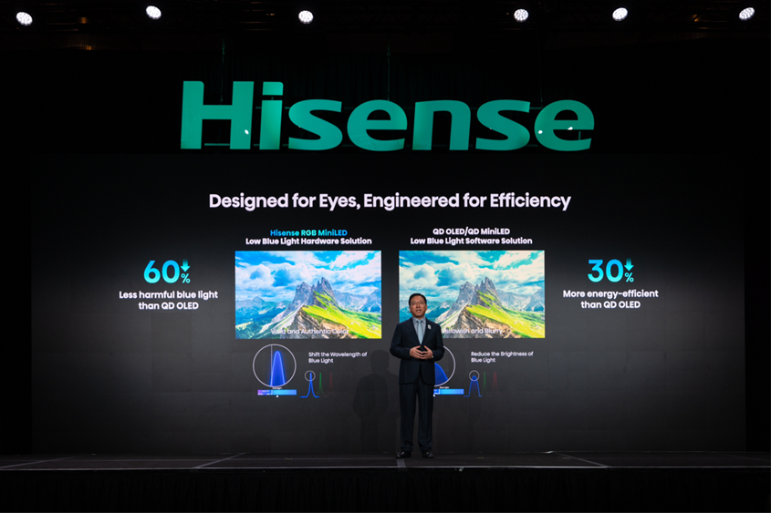 值得一提的是,光源和光色同控芯片的進(jìn)化,讓海信RGB-Mini LED實(shí)現(xiàn)了有害藍(lán)光比QD-OLED降低60%,比傳統(tǒng)QD-Mini LED降低75%,能耗降低30%,在擁有極致畫質(zhì)的同時,既是護(hù)眼先鋒,也是節(jié)能標(biāo)桿。