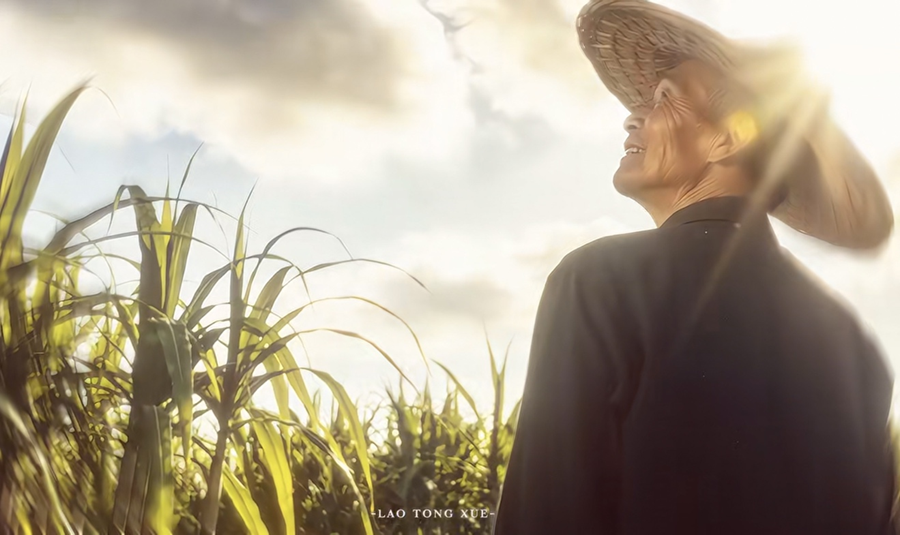 所以,他開始把爺爺奶奶的情節(jié)加進(jìn)作品里。有些是以爺爺?shù)男蜗鬄樵蜕?,有些則會(huì)去果園里找老人,請(qǐng)他們幫忙配合拍攝。對(duì)觀眾來說,這是短視頻里的一個(gè)人物意象;對(duì)他來說,這是在創(chuàng)作里重新靠近記憶。