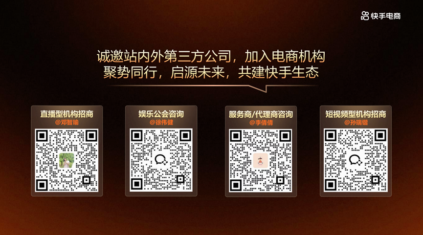 無論您是剛剛?cè)刖?、希望了解電商機(jī)會的新機(jī)構(gòu),還是深耕多年、尋求突破的成熟伙伴,又或是希望更準(zhǔn)確把握平臺今年資源方向的探索者,快手電商都?xì)g迎您的加入。在這里,您可以獲得平臺提供的具體支持與激勵政策,也有機(jī)會結(jié)識真正在行業(yè)里做事的同行,彼此交流,打開思路。