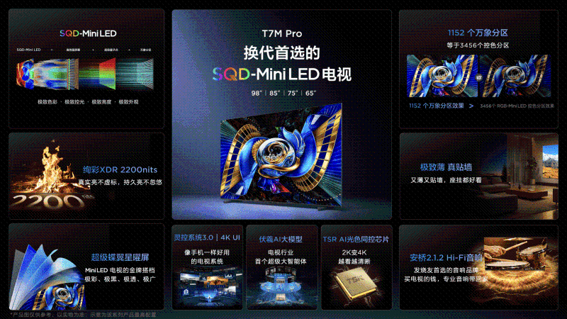 如果說TCL Q9M Pro是讓更多人體驗(yàn)到SQD畫質(zhì)的輕旗艦,那么TCL T7M Pro則是讓SQD-Mini LED技術(shù)真正走進(jìn)千家萬戶的普及先鋒。當(dāng)同價(jià)位產(chǎn)品還在使用普通Mini LED技術(shù),T7M Pro已經(jīng)進(jìn)化到跨代的SQD-Mini LED技術(shù),形成了降維打擊,成為消費(fèi)者換代首選。